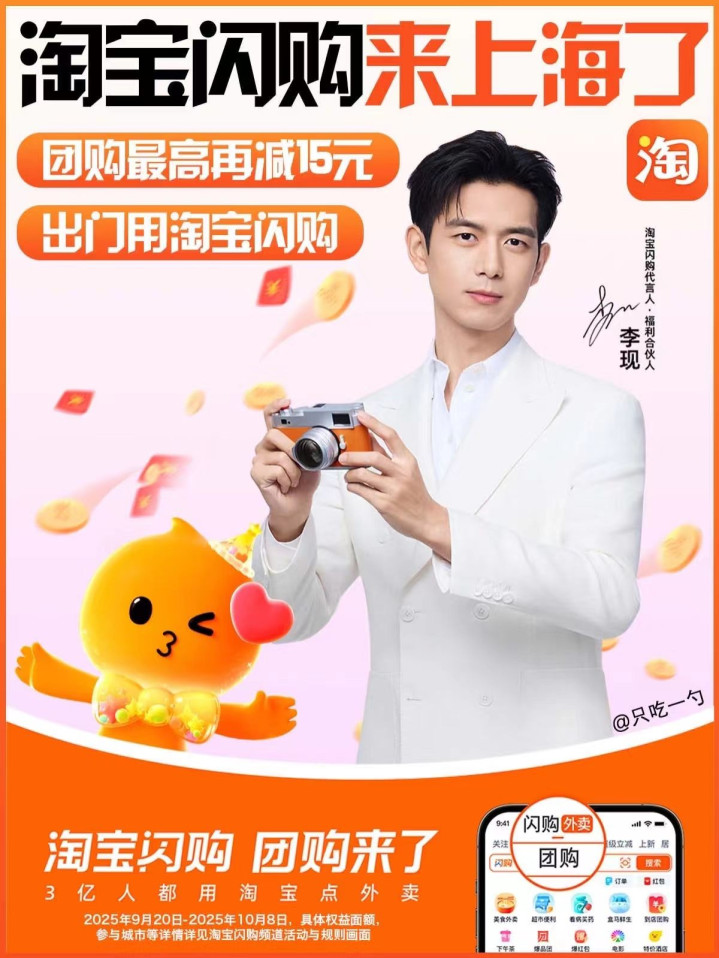 10天后,阿里生态再度出击,淘宝闪购于9月20日正式上线到店团购业务,首批覆盖上海、深圳、嘉兴三个城市的核心商业区域,涉及茶饮、甜品、正餐等多个餐饮品类,团购业务同步在淘宝闪购、支付宝、高德APP等多个入口上架。